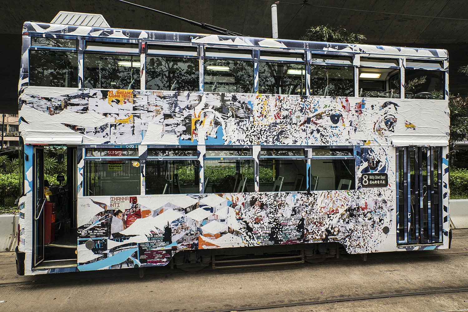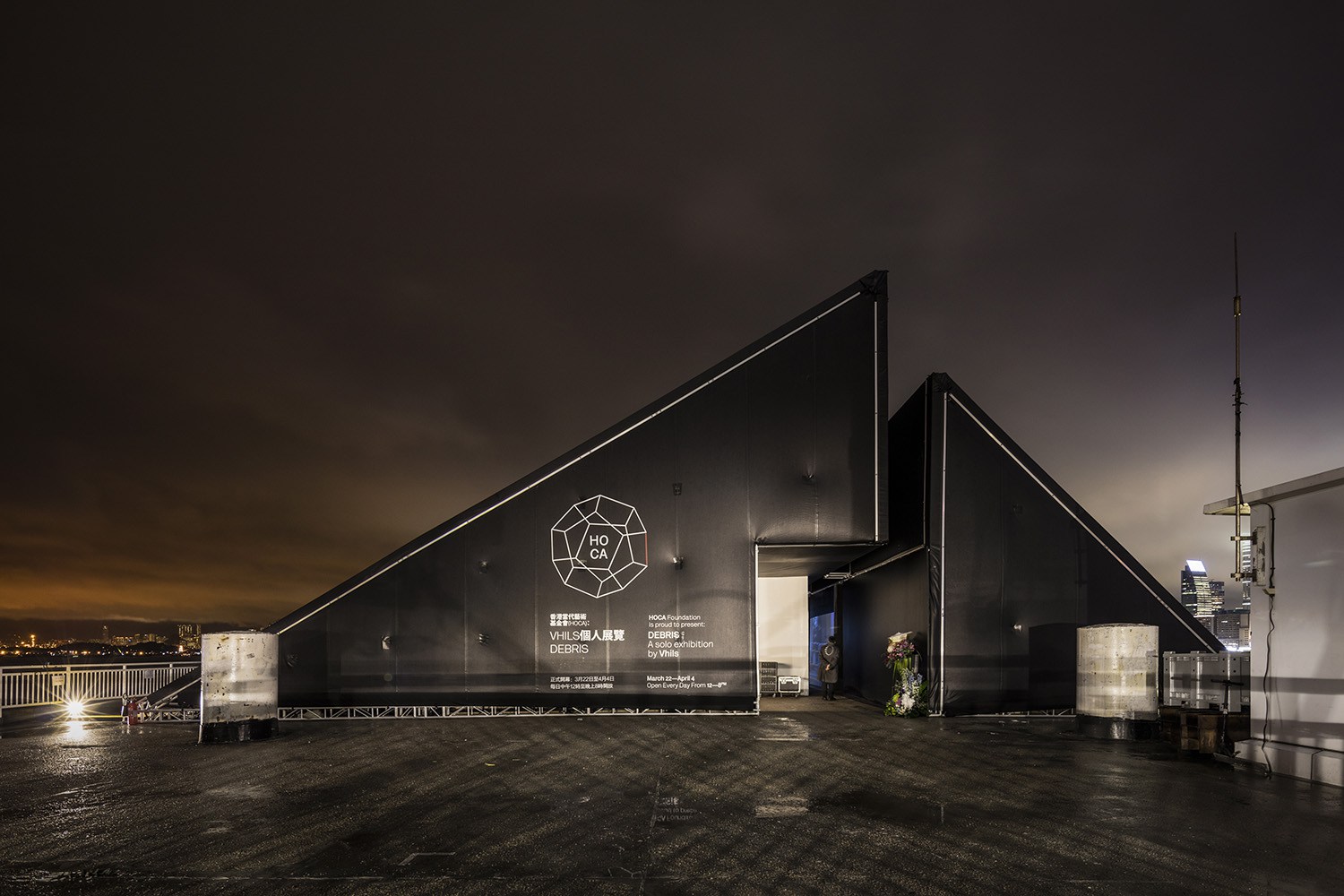 São 20 pecas cujo conjunto foi intitulado Debris. Da exposição fazem parte luzes de néon, projecções de vídeo e painéis de LED, madeira, placas de bronze e é claro pintura na paredes de cimento. Como complemento a esta permanência em Hong Kong, Vhils decorou ainda um eléctrico antigo.